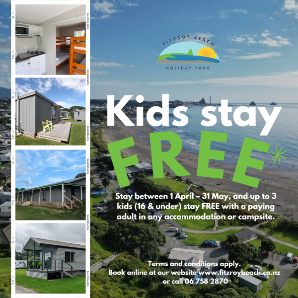 - Maximum of three kids stay free per booking when staying with a paying adult in any accommodation or campsite.